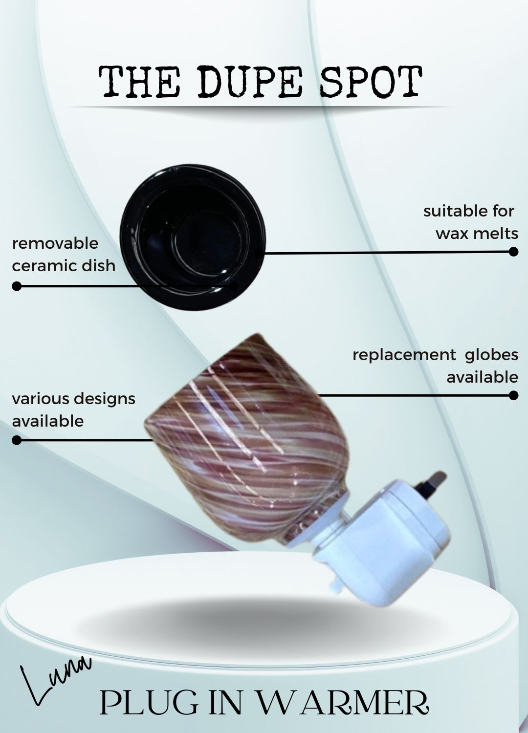 This sophisticated plug-in warmer is made of hand-blown glass and effortlessly connects to power outlets without any external cords. After plugging it in, simply turn it on and place your preferred wax melt on the convenient melt pot topper. You'll appreciate the easy cleaning process that this luxurious purchase offers, which includes a plug-in warmer, a free breakaway soy melt (choose from the dropdown), and a replacement globe. Note: As the glass is hand-blown, there may be variations in color.