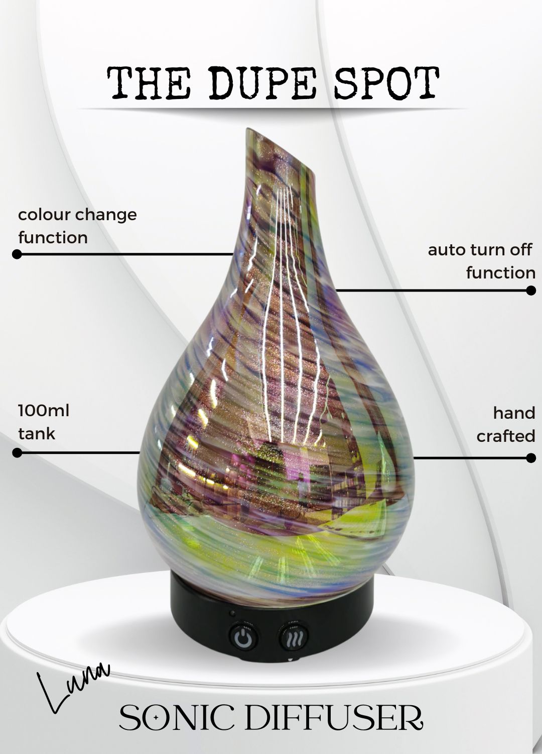 Boasting a 100ml tank and a runtime of 4-6 hours, our sonic diffuser will help ensure your home is fragrant in minutes. With a built-in auto shut-off and color-changing function, it's designed for lasting use. To ensure peak performance, remember to wipe the tank clean with a wet wipe after each use.