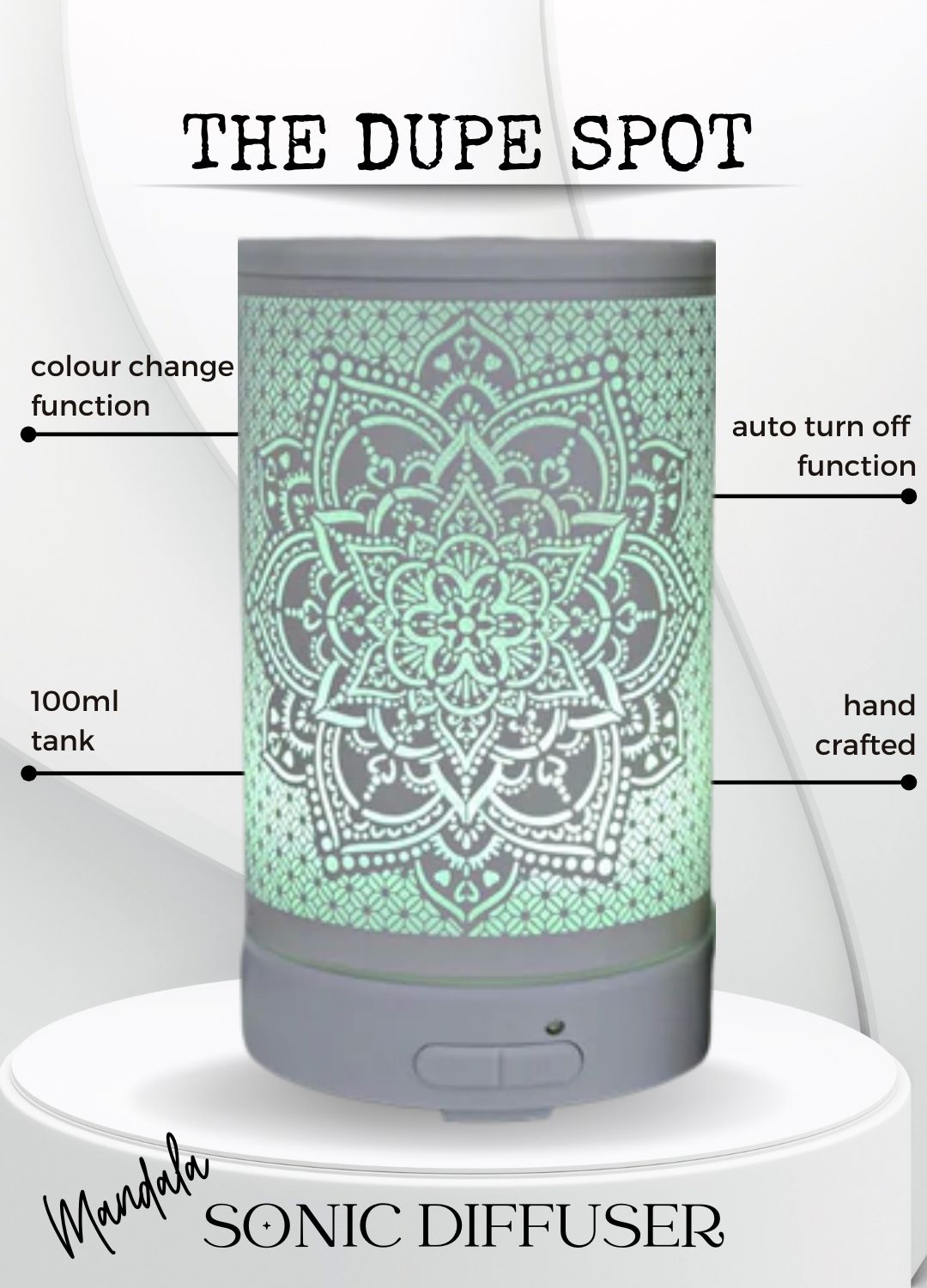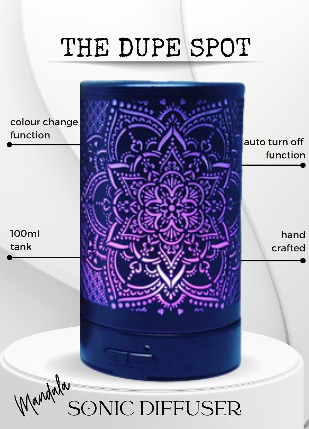 Boasting a 100ml tank and a runtime of 4-6 hours, our sonic diffuser will help ensure your home is fragrant in minutes. With a built-in auto shut-off and color-changing function, it's designed for lasting use. To ensure peak performance, remember to wipe the tank clean with a wet wipe after each use.